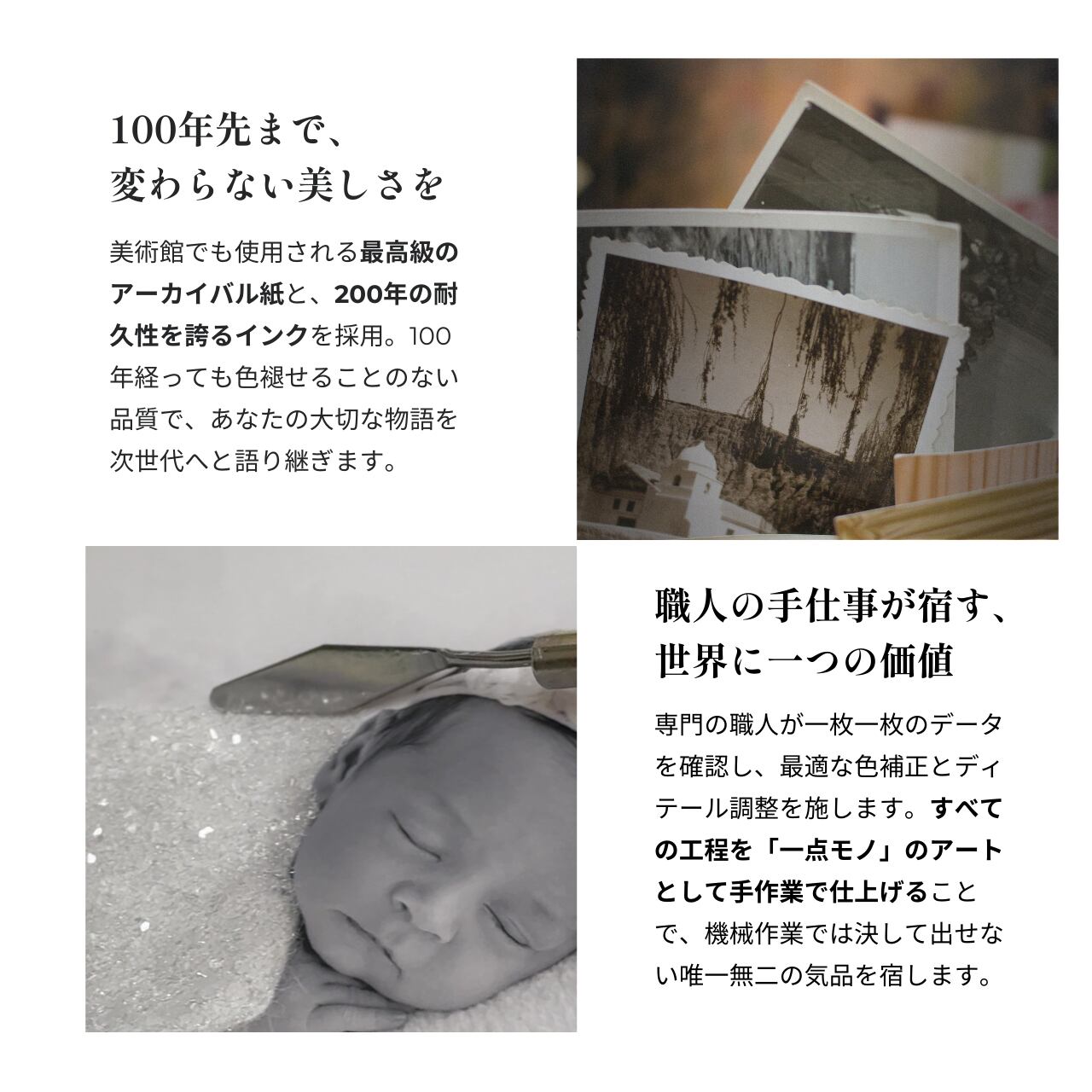 長期保存に適したアーカイブ仕様で、自然なマット質感、豊かな階調、正確な色再現が魅力です。